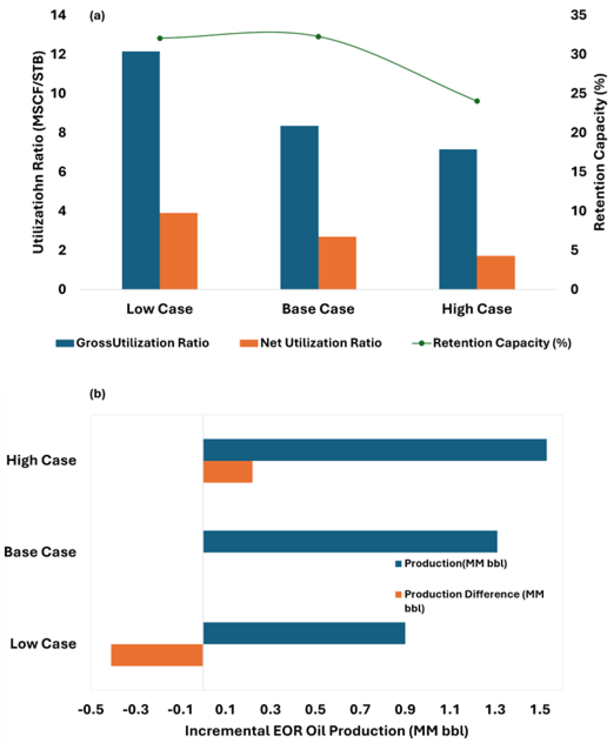 48] reported gross utilization ratios of 7.4–27.0 M SCF/STB and net utilization ratios of 2.4–12.6 M SCF/STB for conventional reservoirs which align with our results.