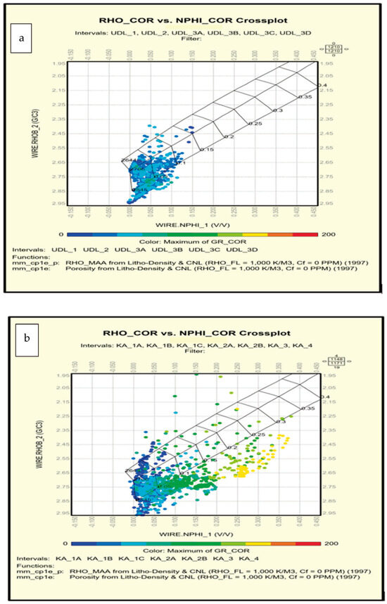- Fertl, W.H.; Atlas, D. Openhole Crossplot Concepts A Powerful Technique in Well Log Analysis. J. Pet. Technol. 1981, 33, 535–549. [Google Scholar] [CrossRef]