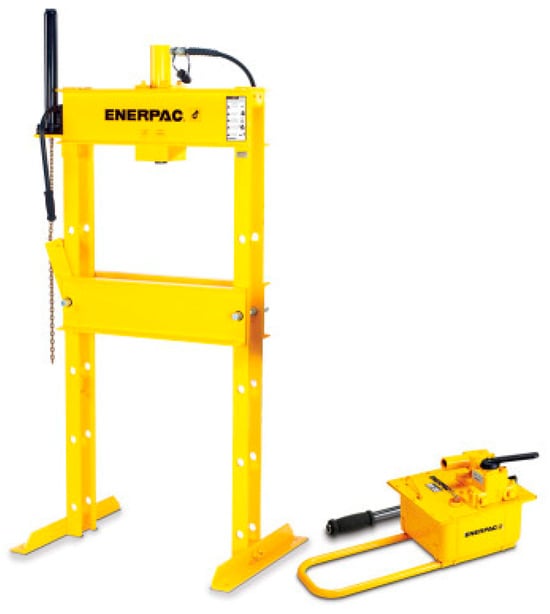 Photograph of a laboratory hydraulic press Enerpac H-Frame.