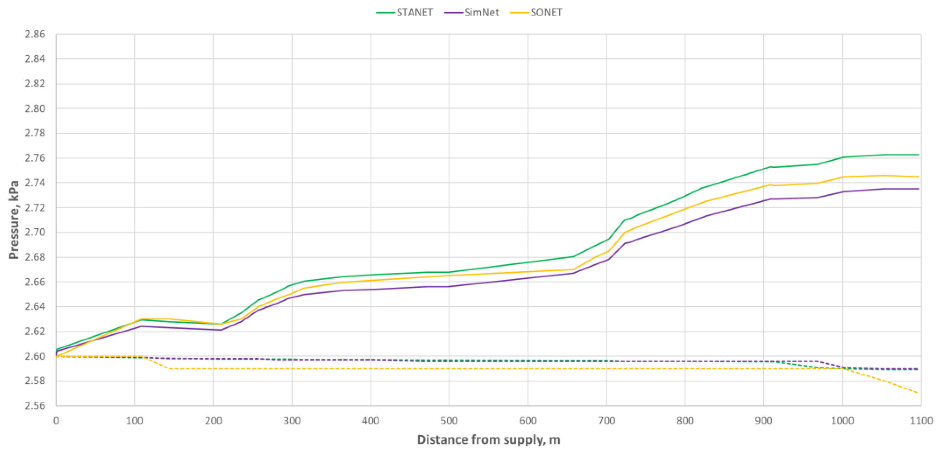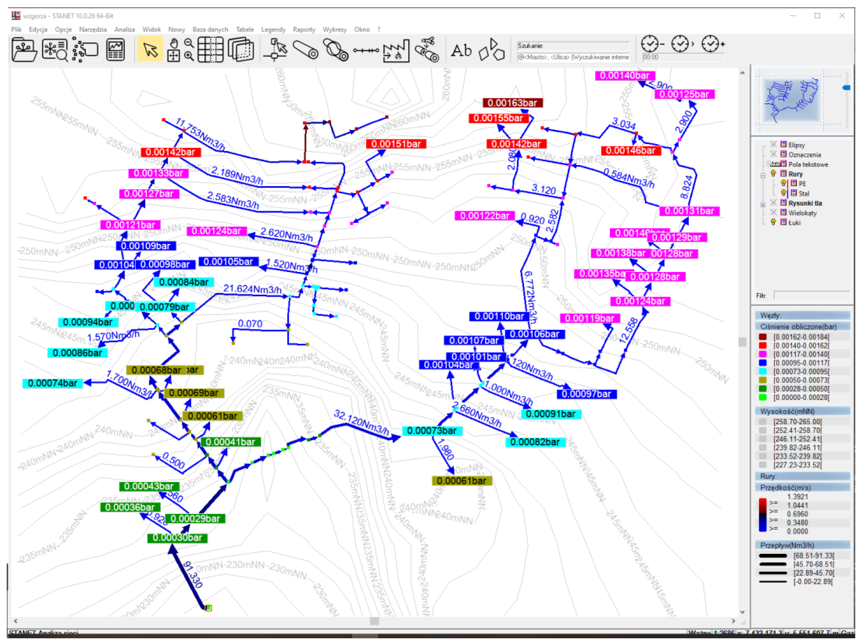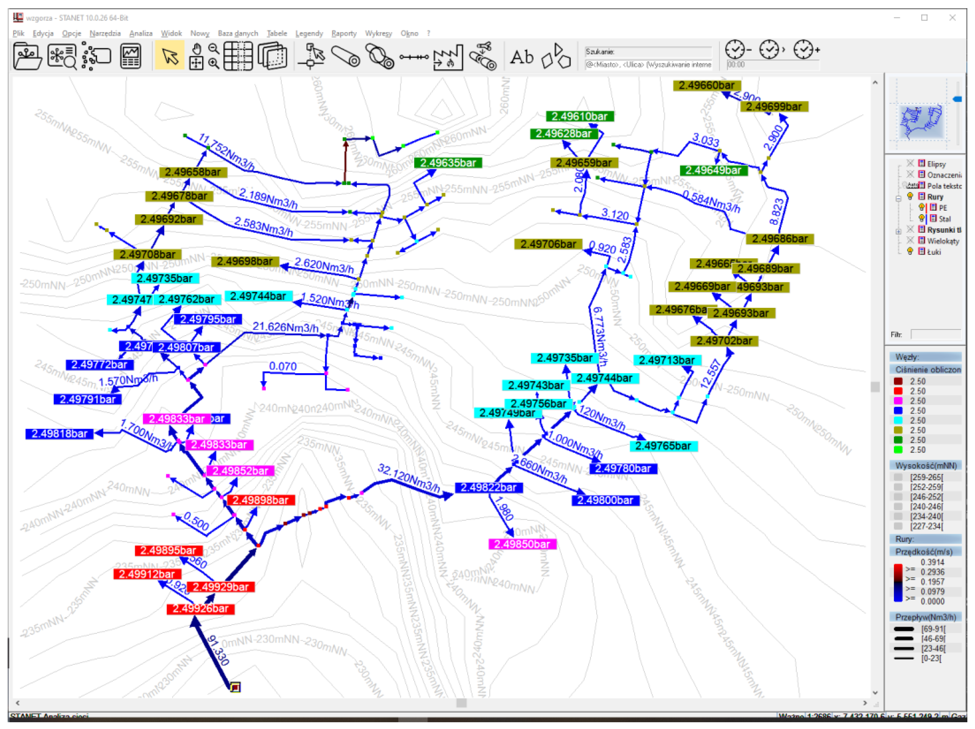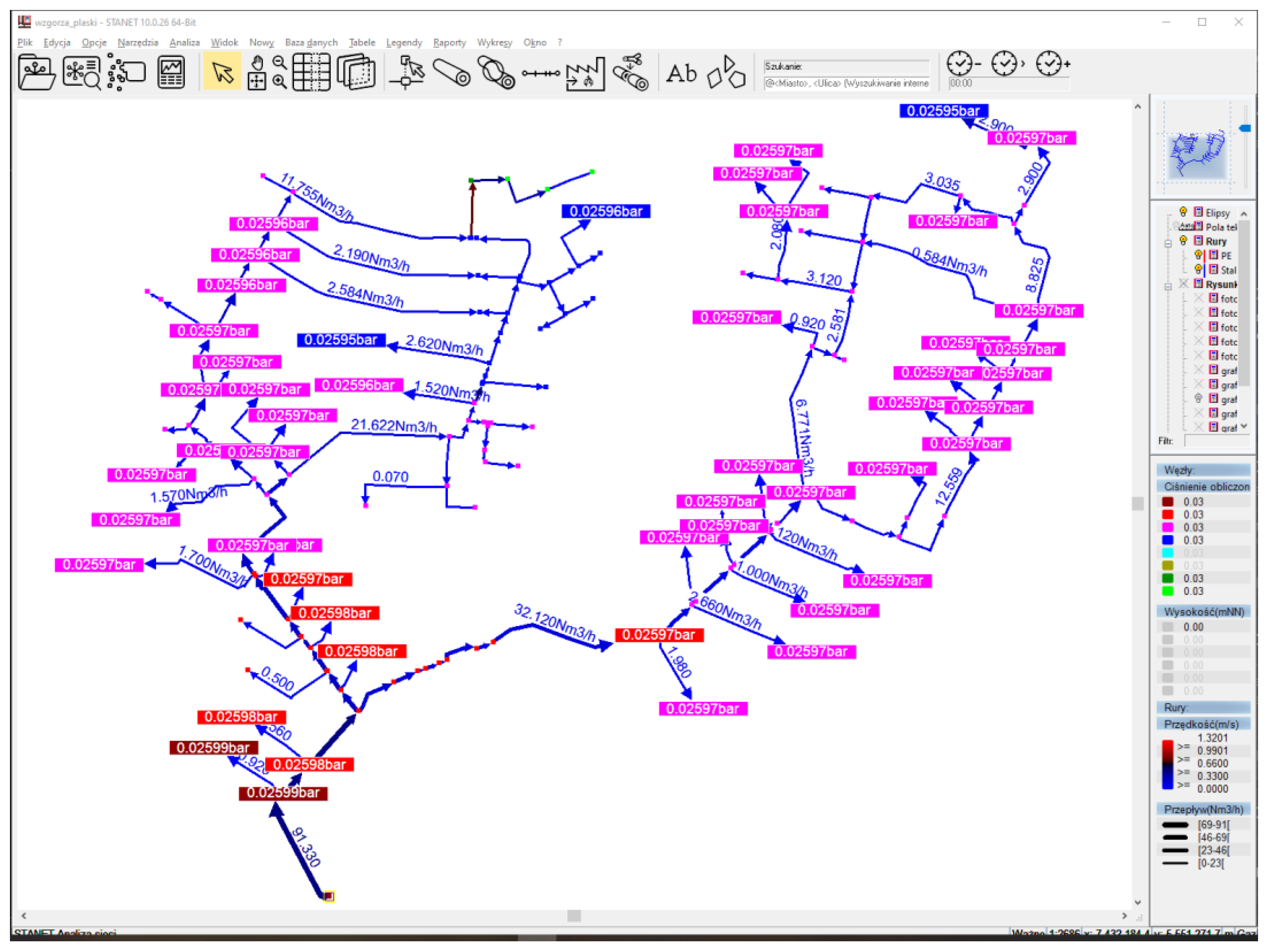 - In low-pressure networks, pressure recovery does occur. Under conditions of low linear pressure losses resulting from gas flow, this can lead to increased pressure in sections of the network located farther from the supply node. A necessary condition is an appropriate network configuration, specifically an increase in node elevation with increasing distance from the supply point.