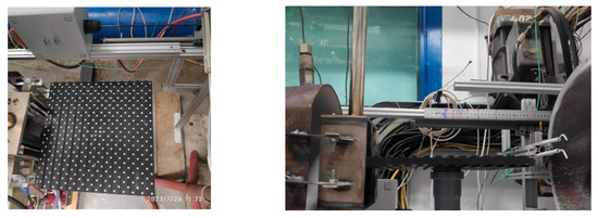 The technique relies on the concept of seeding the working fluid. Solid particles, in this case Titanium Oxide, are inserted into the working fluid flow. The seeded flow is illuminated by a medium intensity LASER beam emitted by a Nd:YAG double pulsed LASER. Two high-speed cameras, which capture the image created, are triggered at the same moment. Through the processing of these images, the movement of the solid particles in the flow is tracked, and the velocity vector components are computed based on the time elapsed between two snapshots. Stereo PIV measurements have been conducted under steady inlet conditions, featuring a 0.3689 ms delay from the laser pulse to the first camera trigger, a 15 μs gap between the two camera triggers, and a 100 μs exposure time for each camera. The recording frequency was set at 7.26 Hz. A total of 100 double images were captured for post-processing, providing instantaneous velocity fields. The PIV system, data acquisition, and processing are presented in detail in [23]. Figure 3 presents the PIV testing rig setup. Figure 4 presents the measurement plane (200 mm × 200 mm) position. The velocity measurements have been conducted in the exhaust of the operating afterburner system fueled with 100% hydrogen.
