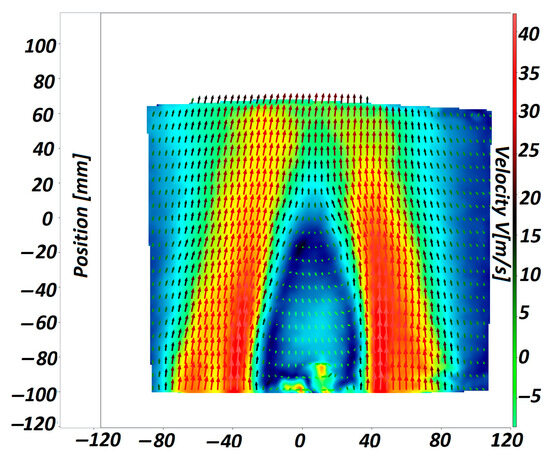Figure 7 presents the tested prototype during the combustion experiments. Figure 8 presents the averaged velocity field, downstream of the tested prototype, obtained using the PIV measurement system.