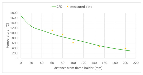 Regarding the flue gas temperature, the differences observed in Figure 11 are most likely due to CFD estimation of the chemical heat release in the employed combustion model and chemical reaction mechanism.