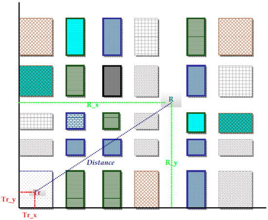The propagation environment and the 23 features that describe it were introduced in our previous research [15,16,17]. The area is formed from rectangular buildings, whose dimensions (in addition to the roads’ dimensions) are randomly distributed, corresponding to an urban area. All measurements are taken along the roads and at the crossroads of the area.