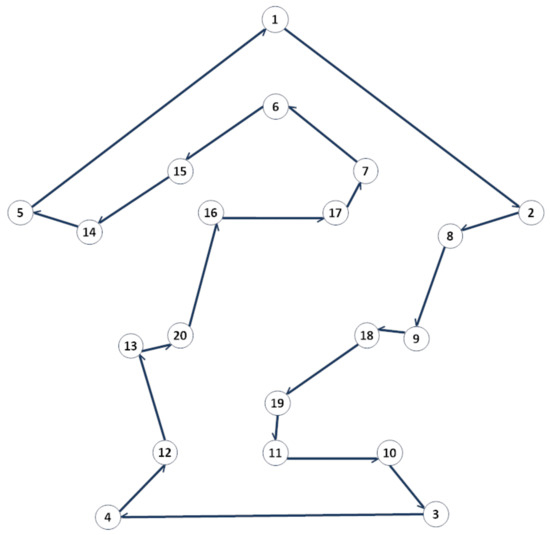 Equation (1) gives a direct and a return path from node 1 to node 20 and the resulting graph is depicted in Figure 9.