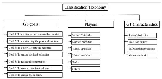 The classification of existing approaches should be very exhaustive and very efficient by covering all the game theory proprieties and all the important issues addressed by this model in the virtualization environments. Accordingly, we introduce an inclusive taxonomy, which focuses on three essential criteria: the game characteristics, the players during the game, and the goals for applying the GT into the NV environments (see Figure 4).