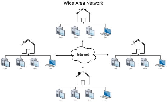 Moreover, all techniques discussed in this paper apply either to Local Area Networks (LAN) or Wide Area Networks (WAN). LAN are networks where devices are connected within small geographical locations, such as a building or a group of buildings, as shown in Figure 2. Networks are considered WAN when they span larger geographical locations across large distances, such as a country-wide network or a global network, as shown in Figure 3.
