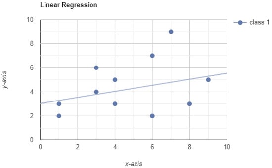Linear regression is a common technique used in statistical analysis to find and estimate a relationship over two or more sets of variables, regardless of how these are distributed. The variables for regression analysis have to comprise the same number of observations but can otherwise have any size or content. In other words, we are not limited to conducting regression analysis over scalars, but we can use ordinal or categorical variables as well. Figure 6 shows a scatterplot with a best fit linear trend line.