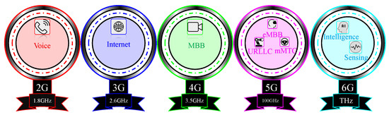 In the modern era of big data, the demand for higher data rates, low latency, and reliable communication is increasing daily [1]. In the past few years, the number of users is increasing drastically as mobile network communication evolved from first-generation (1G) to fifth-generation (5G) [2]. 1G supported voice calls only, 2G kept message services while 3G had internet support. 4G grew in the 2010s and supported mobile broadband (MBB). In the 2020s, 5G evolved and offered mobile broadband (eMBB), ultra-reliable low latency (URLLC), and massive machine-type communication (mMTC) services. Nowadays, the sixth generation (6G) is developing and offers intelligence and sensing technologies. These technologies require more bandwidth and data rates. Figure 1, shows the evolution of mobile communication from 2G to 6G.