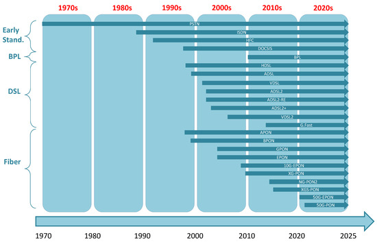 4.1. Five Generations of Access: From PSTN to 50G EPON