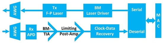 - Verbist, J.; Verplaetse, M.; Lambrecht, J.; Srivinasan, S.A.; De Heyn, P.; De Keulenaer, T.; Pierco, R.; Vyncke, A.; Absil, P.; Yin, X.; et al. 100 Gb/s DAC-less and DSP-free transmitters using GeSi EAMs for short-reach optical interconnects. In Proceedings of the 2018 Optical Fiber Communications Conference and Exposition, OFC 2018-Proceedings, San Diego, CA, USA, 11–15 March 2018; pp. 1–3. [Google Scholar]