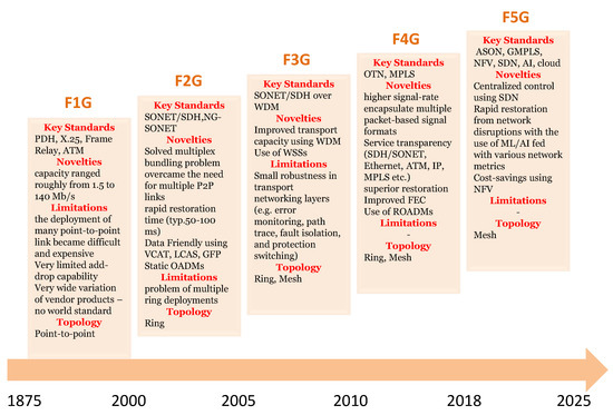 - Liu, X. Evolution of Fiber-Optic Transmission and Networking toward the 5G Era. Iscience 2019, 22, 489–506. [Google Scholar] [CrossRef]