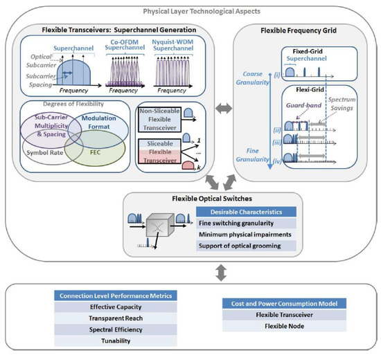 - Tomkos, I.; Azodolmolky, S.; Sole-Pareta, J.; Careglio, D.; Palkopoulou, E. A tutorial on the flexible optical networking paradigm: State of the art, trends, and research challenges. Proc. IEEE 2014, 102, 1317–1337. [Google Scholar] [CrossRef]