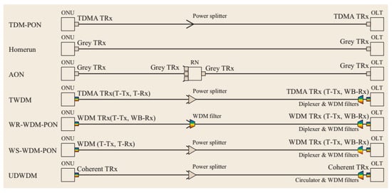 - Prat, J.; Valcarenghi, L. Emerging PON Technologies. In Handbook of Optical Networks; Mukherjee, B., Tomkos, I., Tornatore, M., Winzer, P., Zhao, Y., Eds.; Springer: Cham, Switzerland, 2020. [Google Scholar]