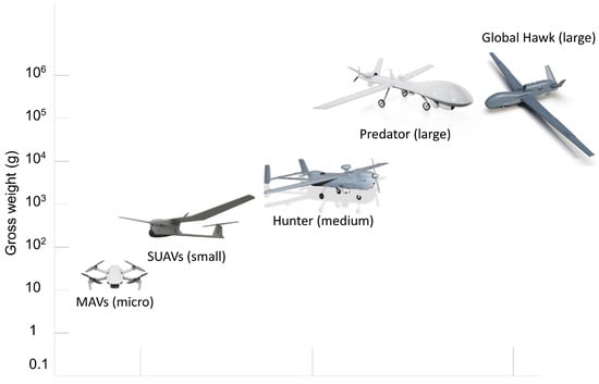 Drone chart distribution based on UAVs’ weight and wingspan size (Reprint with permission from Ref. [15]. Copyright 2022 IEEE).