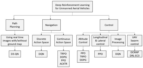 Taxonomy graph of DRL Algorithms for UAV Tasks [40].