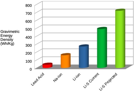 Gravimetric energy density of Li-S batteries compared to the state-of-the-art alternative battery technology (Reprint with permission from Ref. [15]. Copyright 2022 IEEE).