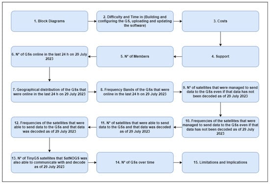 This methodology ensured a comprehensive and systematic comparison of various aspects between SatNOGS and TinyGS, offering readers a thorough understanding of the projects’ differences, strengths, and limitations. The next section will provide a more detailed description of each of the aforementioned topics.