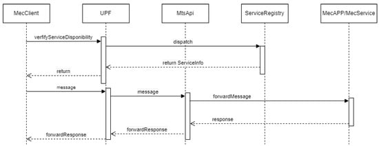 The functionality will be accessible via an external port called NodePort using the Kubernetes Kube-proxy service. In this context, Kube-proxy establishes a port linked to the service using NAT [37]. As seen in Figure 3, the expectation is that the client will check the availability of the desired service in the Service Registry and, if available, receive all the relevant information. Consequently, the data format the MTS API expects must contain the full IP address, i.e., the destination IP, port, and endpoint.