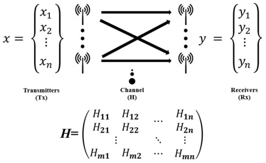 For the SISO scenario, Equation (1) encapsulates the relationship, where ‘y’ represents the received signal, ‘x’ signifies the transmitted signal, ‘H’ denotes the channel matrix, and ‘n’ symbolizes noise.