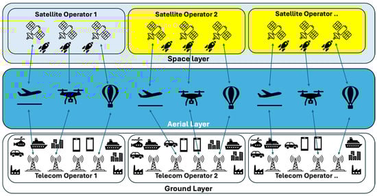 Figure 7 illustrates how future telecoms can form interoperable processes with other telecom operators. Blockchain interoperability cases are also applicable to 6G. Figure 8 illustrates how different parties are integrated with the 3D 6G space for future telecom interoperation landscapes.