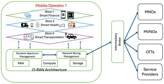 Network slicing and dynamic spectrum sharing architecture. O-RAN, open radio access network; MNO, mobile network operator; MVNO, mobile virtual network operator; OTT, over-the-top.