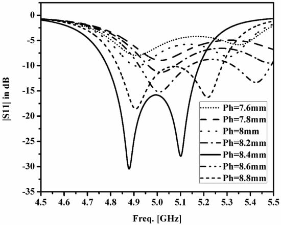 S11-Plots of various lengths (Ph) of the feed.
