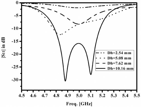 S11-Plots of various heights (Dh) of the DR.