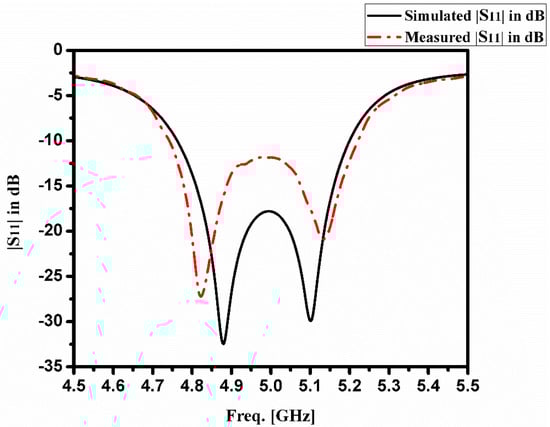 Simulated and measured S11 plots of proposed HDRA.