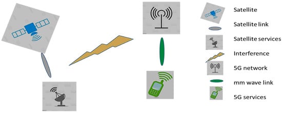 The deployment of the fifth generation of mobile radio communication by 2020 was projected to face several challenges, including a rise in service demand with low latency, in order to service billions of end customers known as satellite mobile users []. Terrestrial communication systems will most likely meet a thick network of countless small cells at any time and anywhere. As a result, services from terrestrial systems are unavailable to some of the world’s most remote locations []. Moreover, effective interference control is necessary to share the spectrum between satellite systems and terrestrial equipment because of the limited supply of spectral resources.