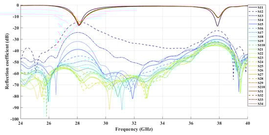 Geometric parameter optimization aimed at minimizing reflection losses, enhancing radiation efficiency, and meeting the stringent requirements of mm-Wave communications. The final antenna dimensions are summarized in Figure 6 and Table 2, illustrating the necessary design refinements for stable operation at the target frequencies.