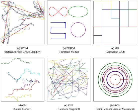 - Prabhakaran, P.; Sankar, R. Impact of Realistic Mobility Models on Wireless Networks Performance. In Proceedings of the 2006 IEEE International Conference on Wireless and Mobile Computing, Networking and Communications, Montreal, QC, Canada, 19–21 June 2006; pp. 329–334. [Google Scholar]
