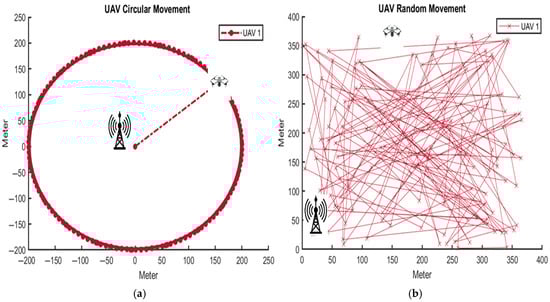 The simulated UAV movement patterns: (a) circular, (b) random.