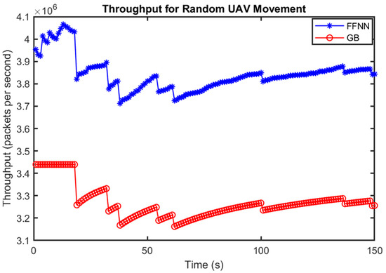 Throughput using BRFFNN and LSGB for bandwidth allocation with random UAV movement.