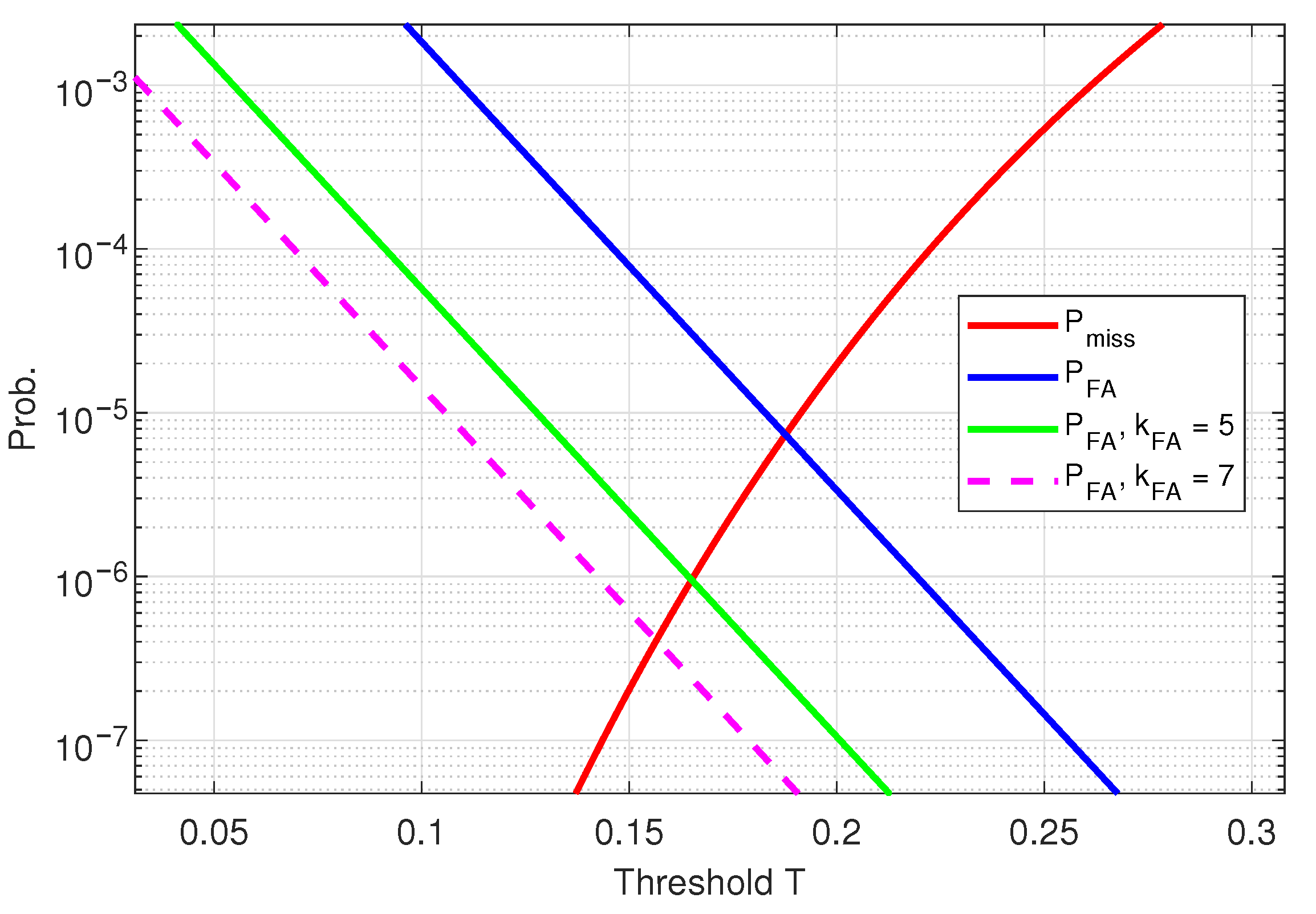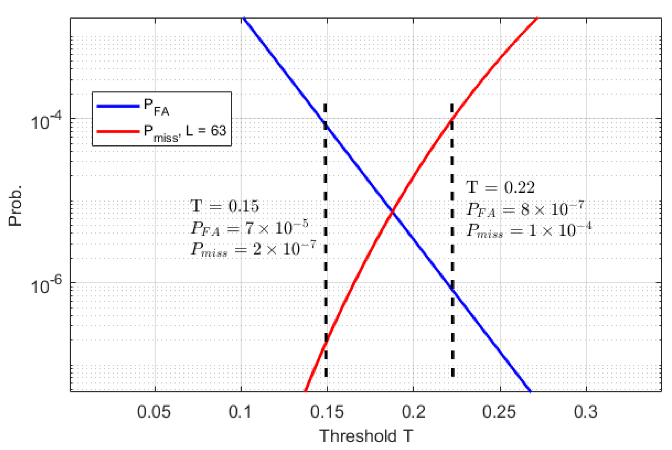 - The threshold shall be low enough to ensure that even weak cross-correlation peaks of the incoming preamble sequence are still being detected. If the threshold detector misses a valid packet start, this results in a miss-detection event. The miss detection probability represents variable .