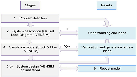 To achieve our overarching aim, this research will systematically follow a series of objectives designed for rigorous system dynamics modeling. The process begins with precisely defining the problem boundary and articulation. We will then proceed to identify the most important stocks and flows that influence the system’s state, along with the sources of information that impact those flows. This involves identifying the main feedback loops at play, which will inform the construction of a causal loop diagram linking all the identified stocks, flows, and information sources. Finally, we will transition to the quantitative phase by formulating the governing equations that determine the flows, estimating the necessary parameters and initial conditions, and ultimately simulating the resulting model to analyze the outcomes and derive actionable insights.