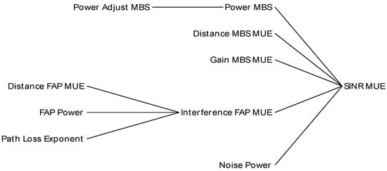 This paper assumes that the channel experiences Rayleigh fading since the propagation channel is characterized by many objects given the indoor and urban environments the study seeks to consider. Ordinarily, there is no dominant line of sight in this environment since the radio signals will tend to experience scattering due to massive buildings and objects. The path loss equations for outdoor and indoor defined in [49] are given in Equations (1)–(3). The path loss from MBS to UE is estimated by Equation (1)