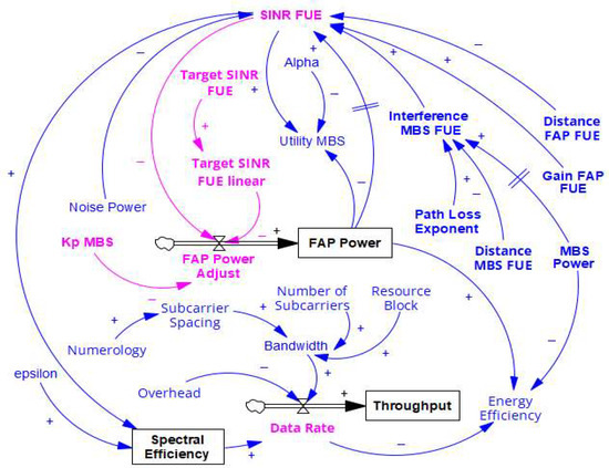 The following subsections discuss the key variables considered for model evaluation. These variables fall under different categories, namely stock, flow, or auxiliary. They include transmit power, interference level, channel capacity, SINR, data rate, spectral efficiency, and utility functions.