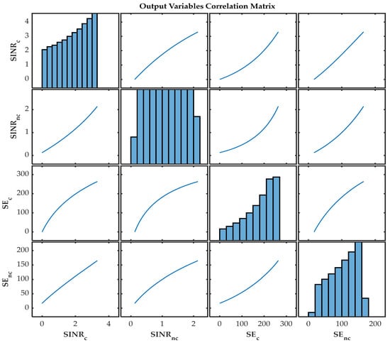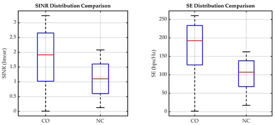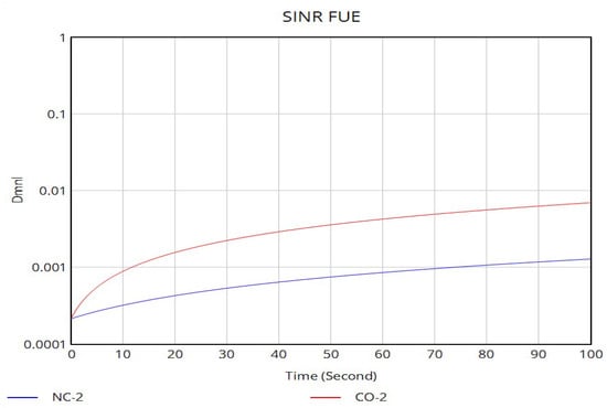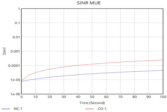 The Shannon–Hartley theorem, also known as the Shannon limit, specifies the amount of information that can be transmitted in each channel bandwidth. Shannon’s equation is only true for additive white Gaussian noise (AWGN) wireline communication channels due to the linearity of SNR. Unlike in a wireline communication channel, wireless communication channels experience signal fading and many interfering signals. Thus, the signal is expressed as signal-to-interference-noise ratio (SINR), , and is expressed as in Equation (5).