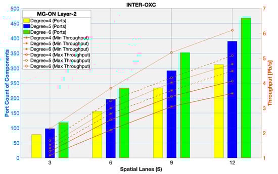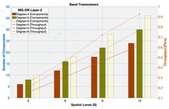 Figure 11 shows the Layer-2 throughput along with the number of band-transceivers for various numbers of spatial lanes (S).