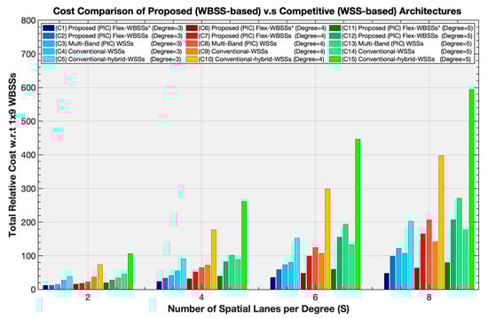 - Nakagawa, M.; Seki, T.; Miyamura, T. Techno-Economic Potential of Wavelength-Selective Band-Switchable OXC in S+C+L Band Optical Networks. In Proceedings of the 2022 Optical Fiber Communications Conference and Exhibition (OFC), San Diego, CA, USA, 6–10 March 2022; pp. 1–3. [Google Scholar]