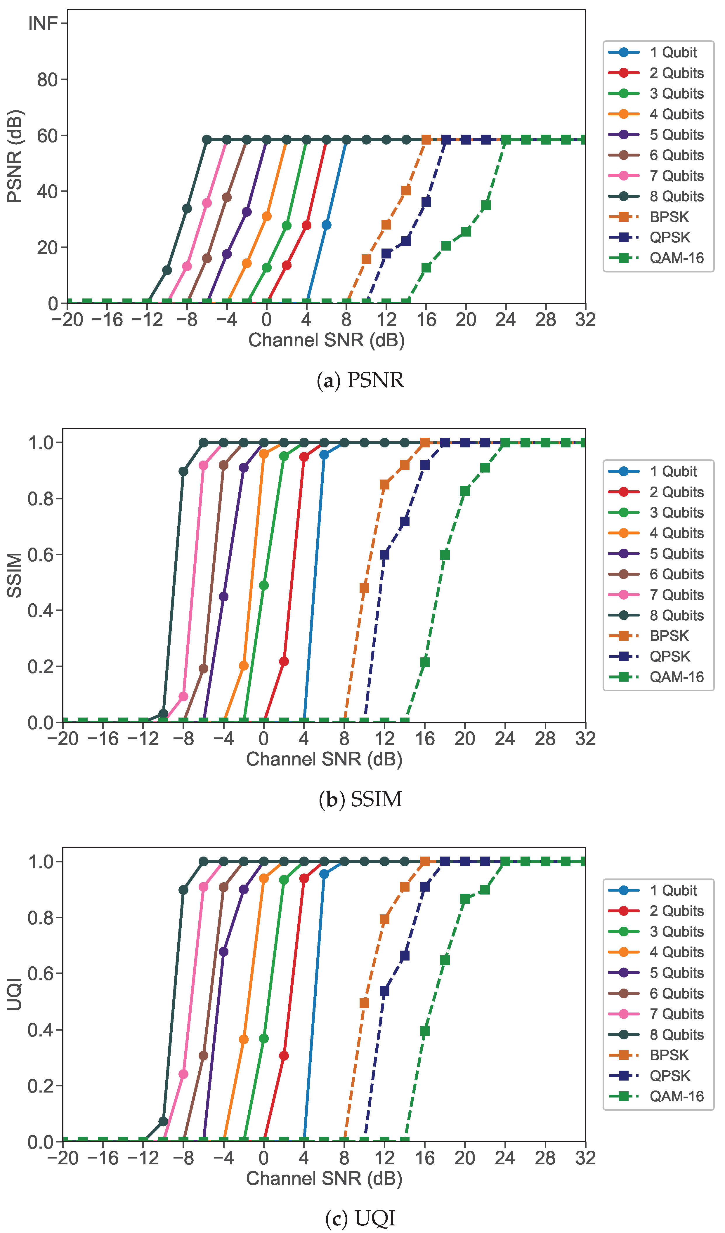 - Jayasinghe, U.; Samarathunga, P.; Ganearachchi, Y.; Fernando, T.; Fernando, A. Quantum communications for image transmission over error-prone channels. Electron. Lett. 2024, 60, e13300. [Google Scholar] [CrossRef]