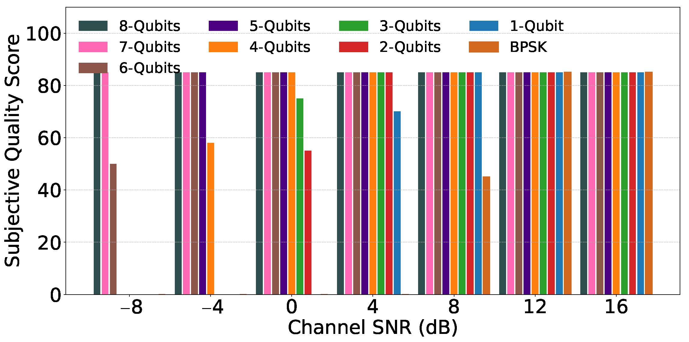 4.1. Performance Comparison of JPEG Image Transmission Using Quantum MIMO-OFDM and Classical MIMO-OFDM Systems