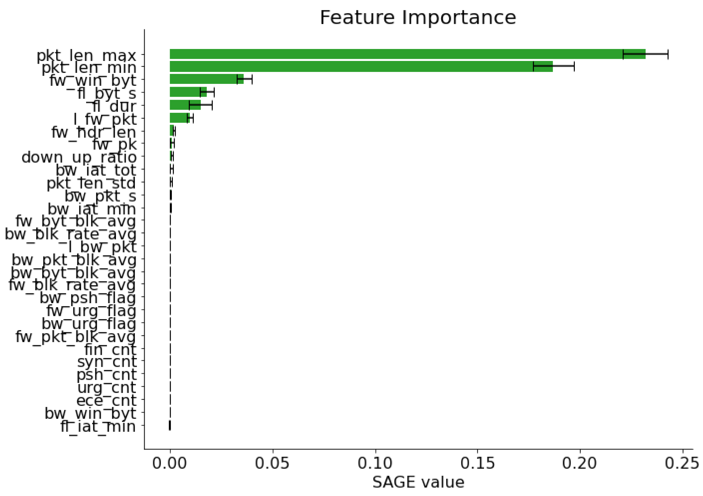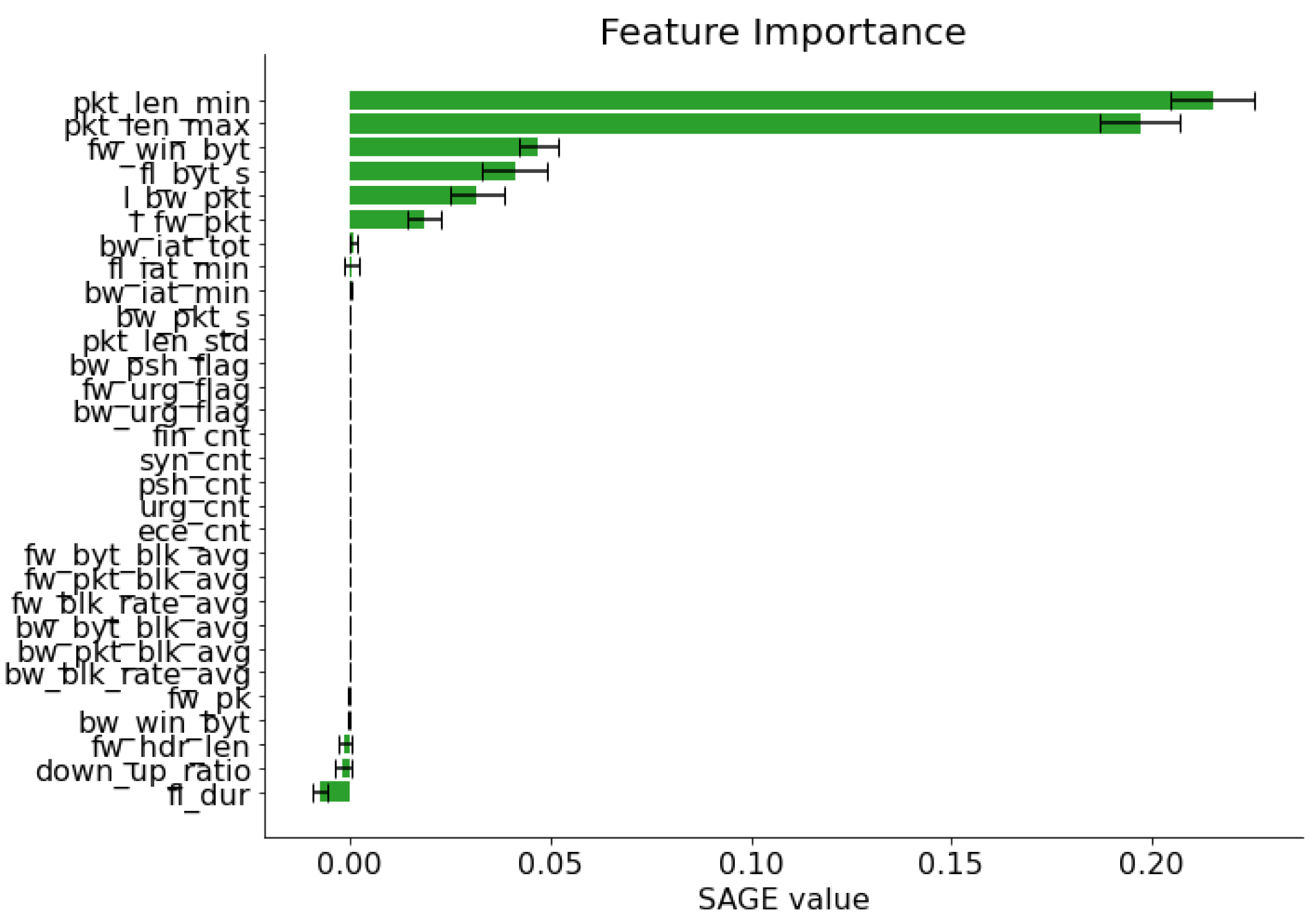 - We apply Shapley Additive Global Explanations (SAGE) to assess which dataset features meaningfully contributed to the predictions of our reinforcement learning model used in our framework. This global analysis provides insight into which network features are most important for detecting attacks in satellite versus terrestrial environments and can inform future feature engineering and telemetry design.