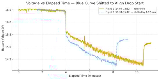 System-level flight-time tests: To capture how the device-level savings translate into UAV endurance, a set of flights was performed per configuration on a 5G-equipped multirotor carrying the same payload (Teltonika 5G router + NVIDIA Jetson Orin) and the same rust-detection software stack. In each run, the UAV takes off with a fully charged battery, follows an identical low-altitude inspection path around the mast, and lands when the battery voltage reaches a predefined safety threshold in the flight controller. The total airborne time from take-off to landing is recorded as the flight duration. To minimize the impact of environmental factors, all flights considered in this study were conducted on the same day, within the same time window, in clear weather and low-wind conditions, and at low altitude. This ensures that illumination, temperature, and wind gusts are as similar as possible between the two configurations. For all experiments, the UAV (i) uses the same payload mass; (ii) follows the same mission profile (static waypoint, speed, and altitude); and (iii) operates with identical safety and landing criteria.