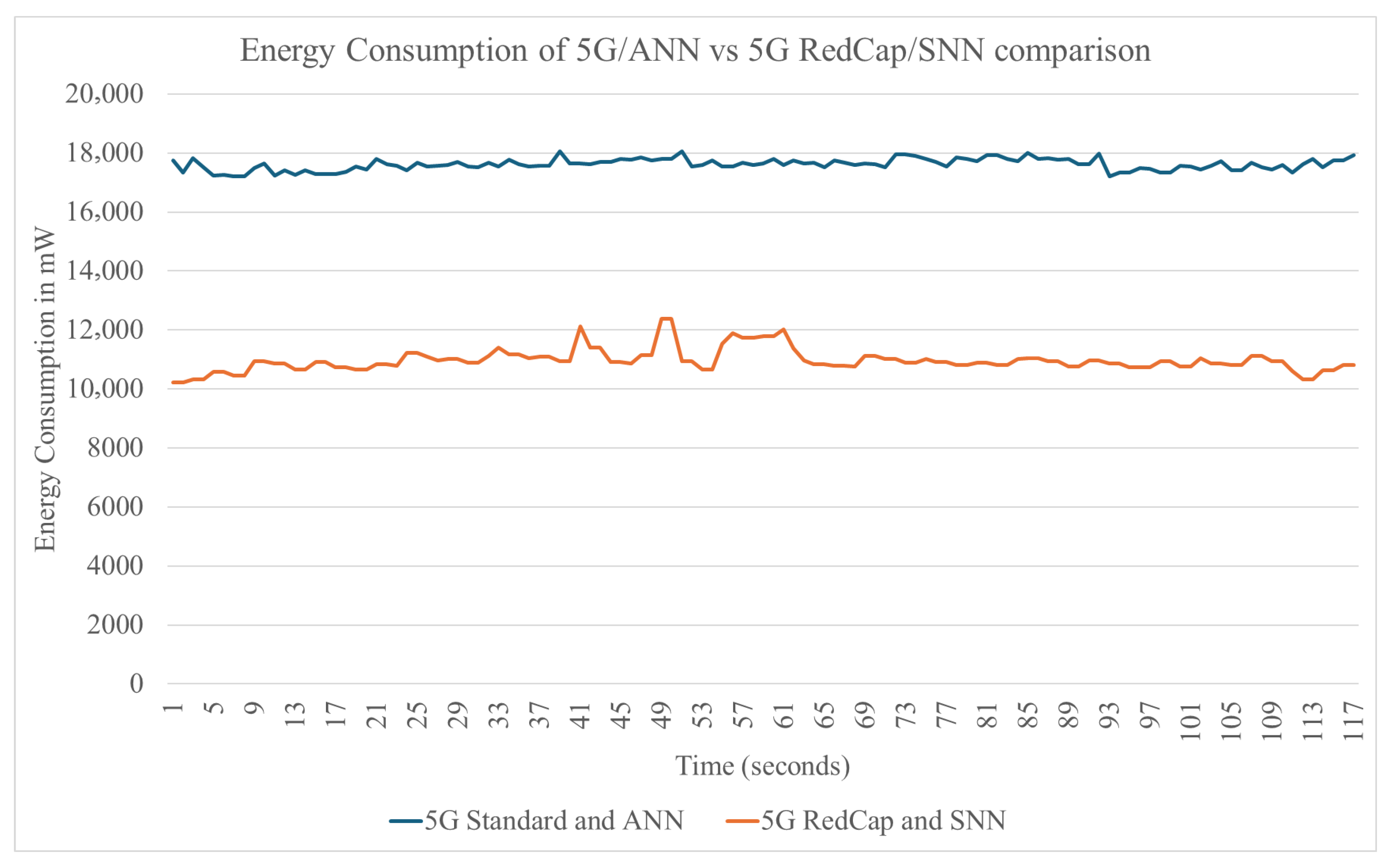 3. Experimental Evaluation of 5G RedCap and SNNs for Edge Deployments and Energy Efficiency Measurement