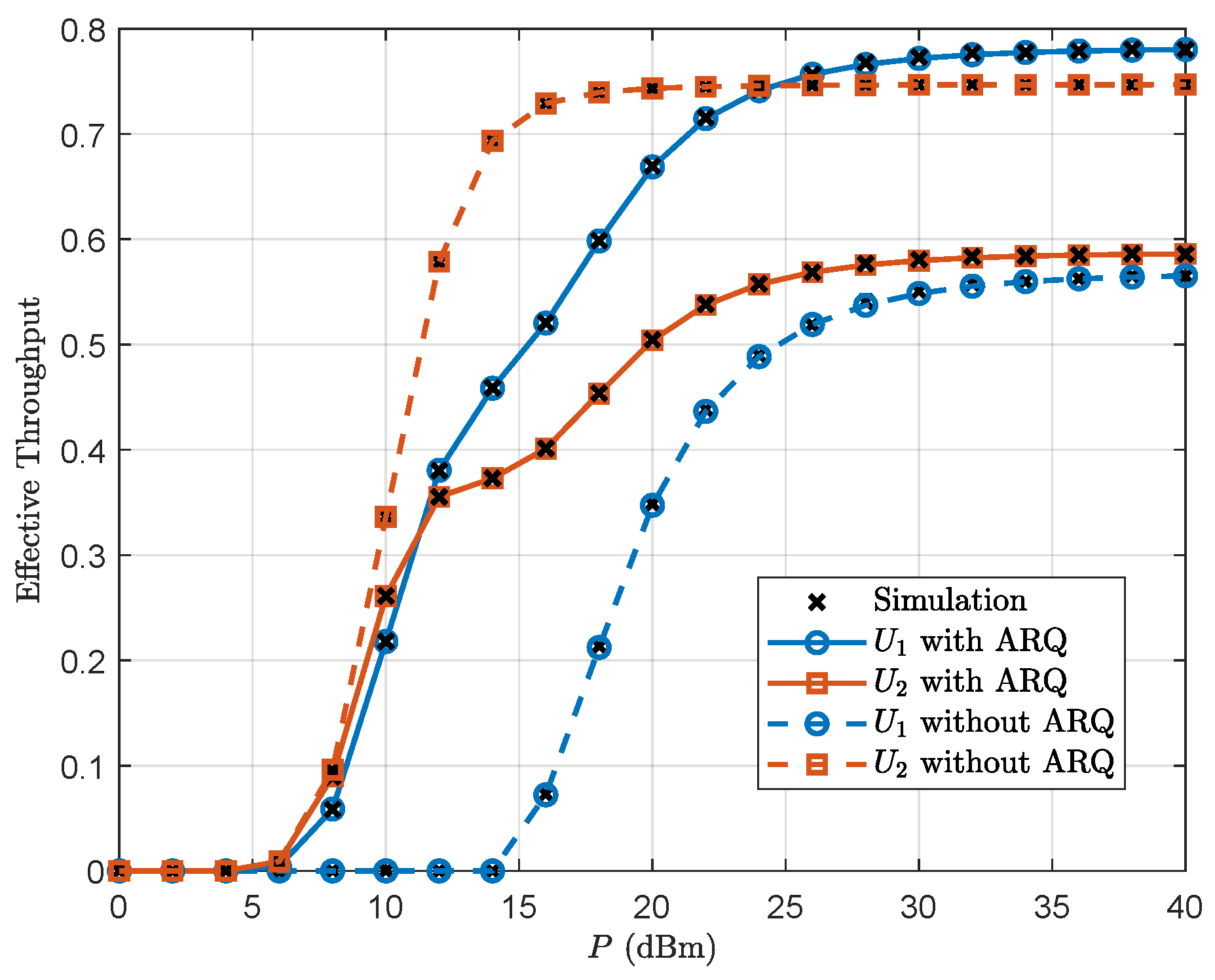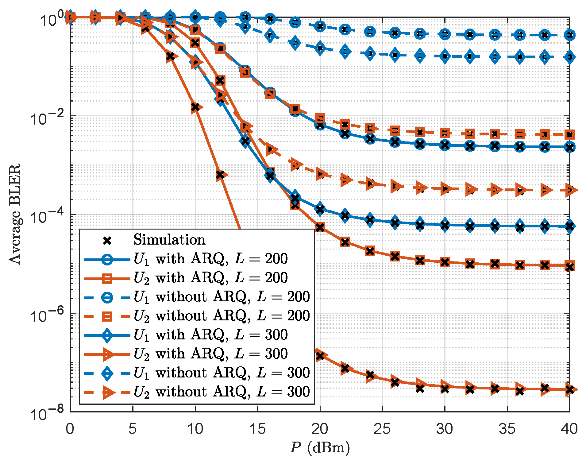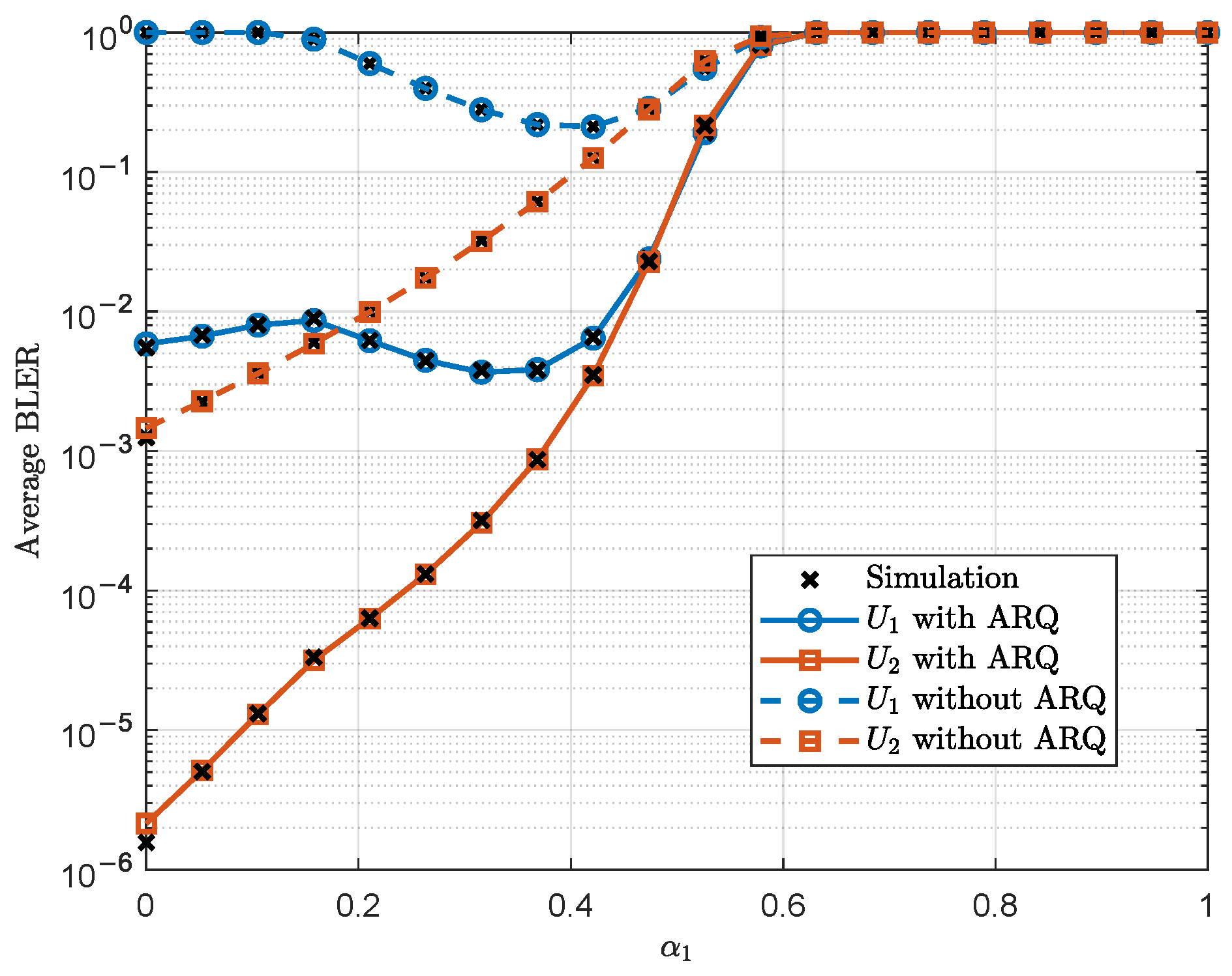 - We present newly derived closed-form expressions that characterize both the average BLER and the effective throughput achieved by the near and far users. The analysis covers various transmission scenarios based on the success/failure states of the first transmission and the corresponding resource allocation strategies in the retransmission phase. The conventional non-ARQ scheme is evaluated as a baseline to quantify the improvements in reliability and spectral efficiency offered by the proposed scheme.