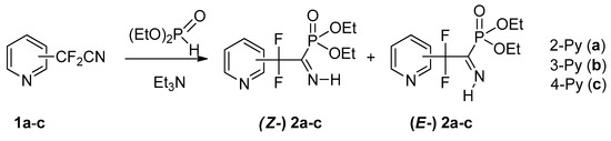 4.1. Synthesis of Diethyl (2,2-Difluoro-1-imino-2-(pyridinyl)ethyl)phosphonates 2a–c: General Procedure