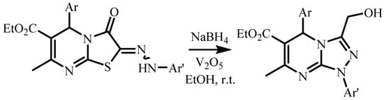 - Lashmanova, E.A.; Agarkov, A.S.; Rybakov, V.B.; Shiryaev, A.K. Rearrangement of thiazolo[3,2-a]pyrimidines into triazolo[4,3-a]pyrimidines induced by C=N bond reduction. Chem. Heterocycl. Compd. 2019, 55, 1217–1221. [Google Scholar] [CrossRef]