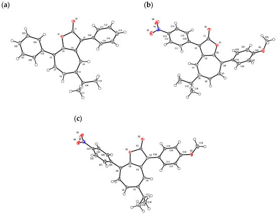 ORTEP drawing of (a) 4a (CCDC2145584), (b) 4b (CCDC2290744), and (c) 4c (CCDC2361752) [29].